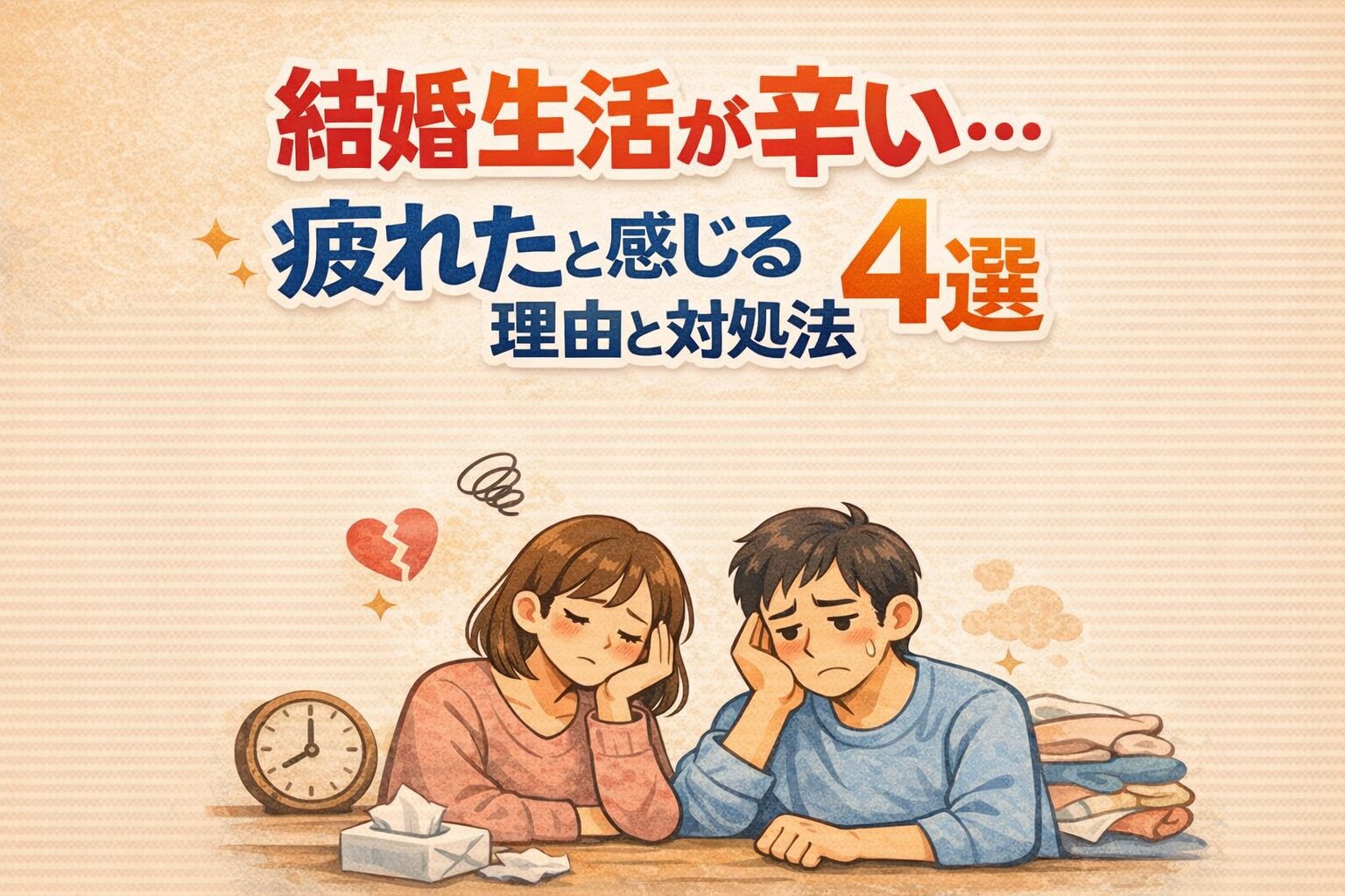 この記事では、結婚4年目・夫婦ふたり暮らしの中で感じた、結婚生活に疲れたときにラクになる方法をわかりやすくご紹介します。